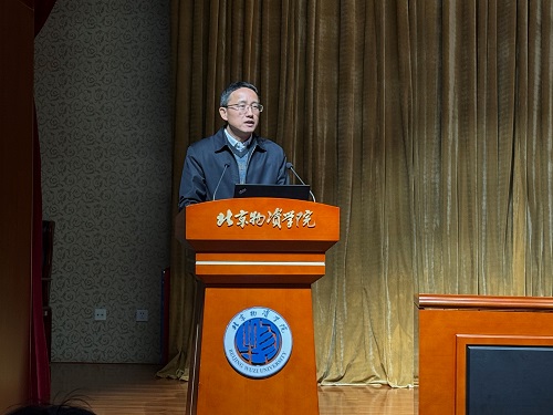 院长韩嵩主持报告环节,董曼茹博士、李泽锦博士、郭茜教授及韩嵩教授依次登台分享研究成果。董曼茹博士以“国家物流枢纽中心建设发展现状与统计分析”为题,系统剖析枢纽建设战略定位与空间布局特征;李泽锦博士聚焦“国家物流枢纽建设助推高质量就业”,通过实证分析揭示其影响机制与经验启示;郭茜教授围绕极端气候冲击下物流枢纽气象风险展开研究,构建多维气候风险评估体系;韩嵩教授则回顾学校在国家物流枢纽中心建设统计体系研究中的阶段性成果,展望未来学科发展与科研创新方向。