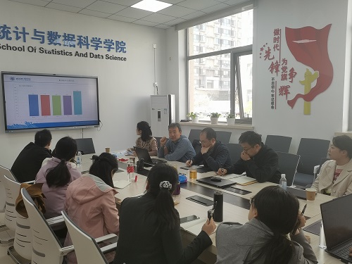 白学波副处长对近三年全校的本科招生录取情况进行了解读,并着重分析了学院的两个专业——应用统计学、数据科学与大数据技术在过去三年招生过程中的优势与挑战。在解读过程中,白处长强调了2024年招生情况的变化,对接下来的招生宣传工作安排进行了梳理,并对招生宣传过程需要注意的问题进行了讲解。李小庆老师重点对学院两个专业2023年招生数据进行了介绍与解读。会上,白学波副处长一行还与学院参会教师就招生过程中关注的一些问题进行了交流。