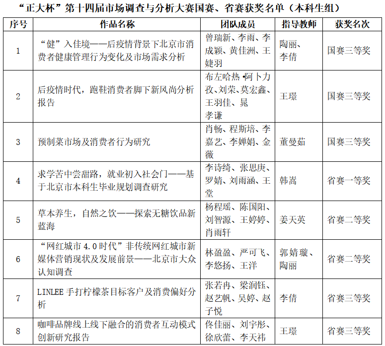近日,由中国商业统计学会主办的“正大杯”第十四届全国大学生市场调查与分析大赛本科组赛、研究生组赛圆满收官。我校参赛队伍在本届大赛中取得奖项突破,共获得国家级奖项5项,省级奖项13