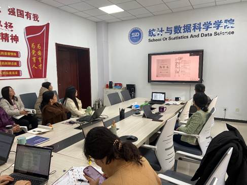 周教授首先从课程思政建设思路、课程思政内涵、课程思政抓手(人物、事件、书籍、案例、实践、反思)角度分享统计学课程思政建设经验。随后,从试验设计混合式课程建设历程、混合式教学设计、创新点等方面介绍国家一流混合式课程建设经验。最后,分析AI引起的教学目标、教学模式的变动以及AI如何实现辅助教学。参会教师与周教授围绕如何开展学生线上学习、数字人、虚拟教研室建设等问题展开热烈讨论。