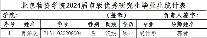 2024届优秀研究生毕业生进行推荐公示如下: