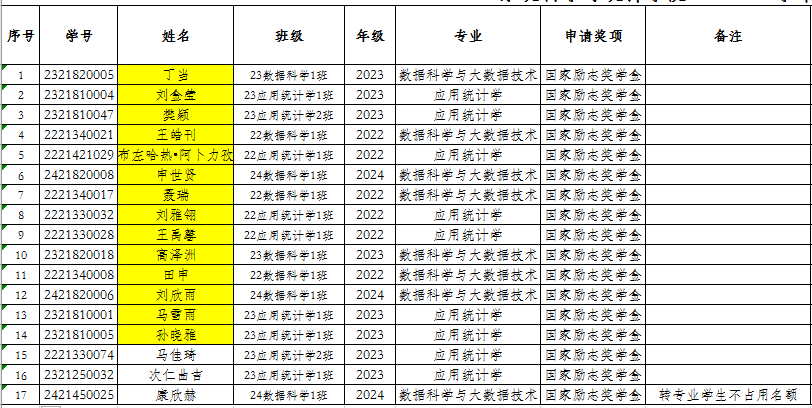 经少妇直播 学生申请,学生工作办公室初步审核,学院评审委员会一致审议通过,现将少妇直播 2025年本科国家励志奖学金推荐人选公示如下(根据学校的名额按照排序定最终人选):