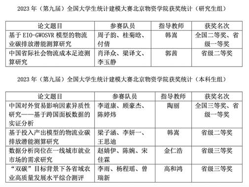 8月30日,2023年(第九届)全国大学生统计建模大赛落下帷幕,我校参赛队伍在本届大赛中共获得全国二等奖1项,三等奖1项,省级一等奖2项,二等奖2项,三等奖2项。其中本科生组全国三等奖1项,省级一等奖1项,二等奖1项,三等奖2项;研究生组全国二等奖1项,省级一等奖1项,二等奖1项。