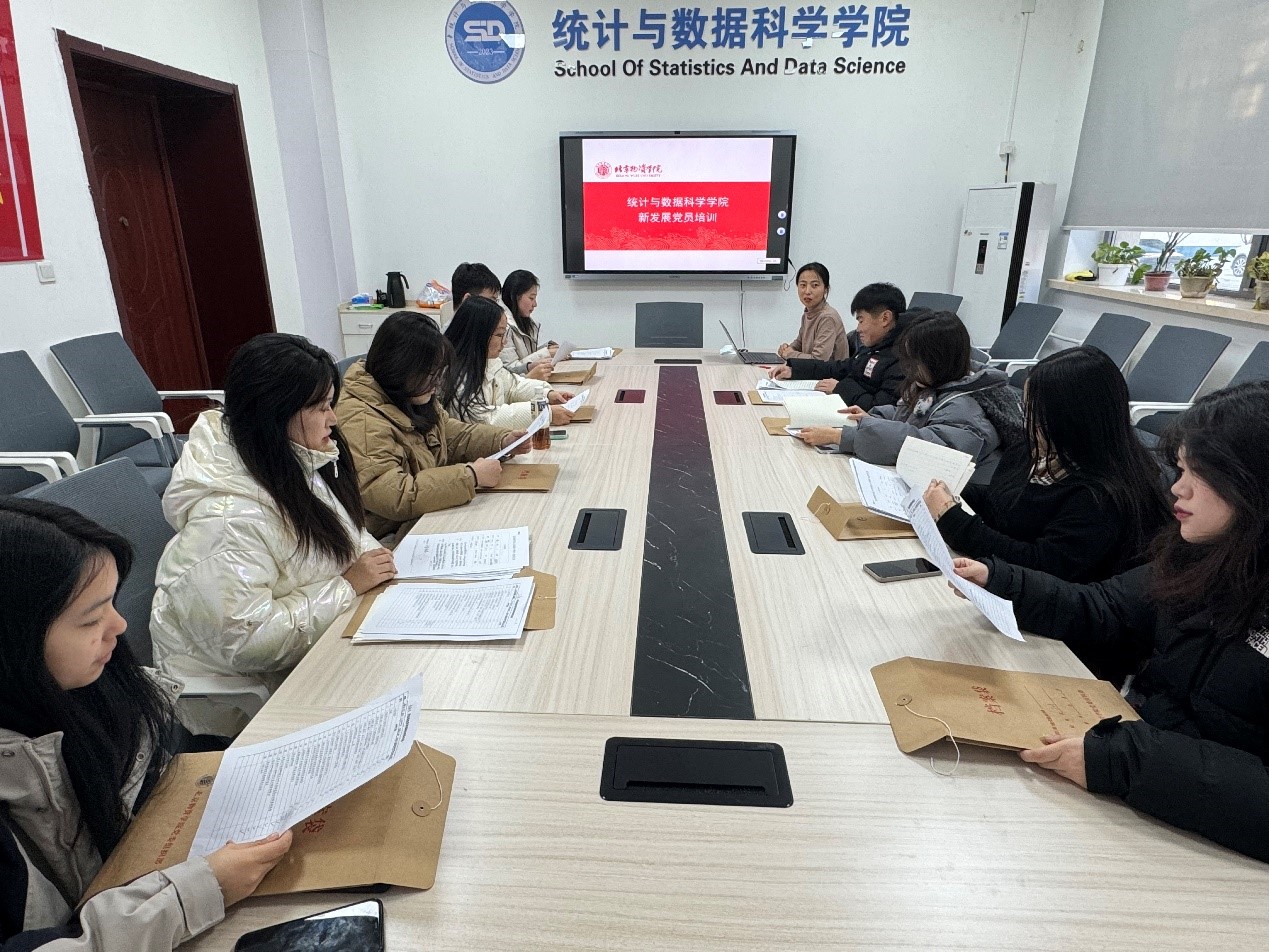 在南实108举行2023年新发展党员专题培训会,讲解发展党员材料的相关要求,会议由统计与数据科学学生党支部书记毕英乐主讲。