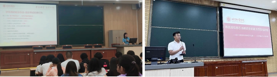 在诚信应考方面,两位老师首先强调了诚信的重要性。随后,老师们详细解读了学校关于考试违纪处理办法,并列举了近年来发生的考试违纪案例,让学生们深刻认识到考试作弊的严重性和危害性。同时,老师们要求全体学生要自觉遵守考试纪律诚信考试