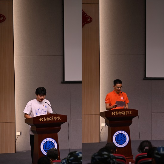 分团委副书记付佳乐作为老生代表发言,他分享了自己在学院的学习和生活经历,他表示要坚守内心的理想,因为真正的成长往往隐藏在那些看似辛苦却充满意义的努力之中。2024级研究生杨欣岳作为新生代表发言,他表示新生应敢于迎接新机遇和挑战,以梦为马,不负韶华。