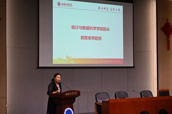 院长郭茜发表致辞。她代表学院全体师生向新生的到来表示欢迎和祝贺,同时介绍了学校和学院的发展历程及辉煌成就以及在科研与教学领域的卓越表现。郭茜院长希望新生扎实理论功底,将理论与实践紧密结合,树立远大理想,为中国式现代化的建设提供人才支撑和智力支持。