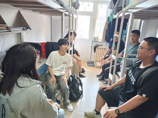 党总支副书记甄姿老师和学生党支部书记、辅导员徐文彬老师与学生党支部青竹领航员共同深入新生宿舍,开展青竹领航共绘成长计划交流活动,旨在了解新生入学后的学习、生活适应情况,就学业规划、考研规划、人际关系等话题进行了深入细致地探讨。