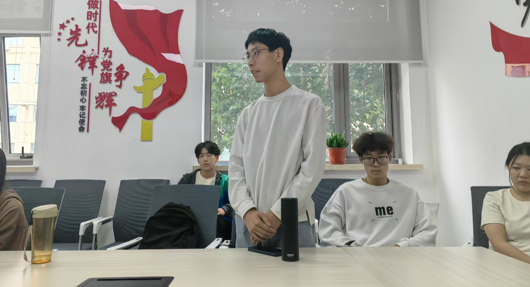 紧接着,分团委组织部对近期各班级开展的双推优工作进行总结。组织部部长杨显婷表示,通过此次活动,不仅加深了同学们对入党入团的认识和理解,也进一步激发了大家发挥先锋模范作用的热情,推进党团班一体化建设。同时,她也指出了活动中存在的一些问题,如部分班级推优程序规范性、材料准备充分性等问题,并提出了相应的改进措施。