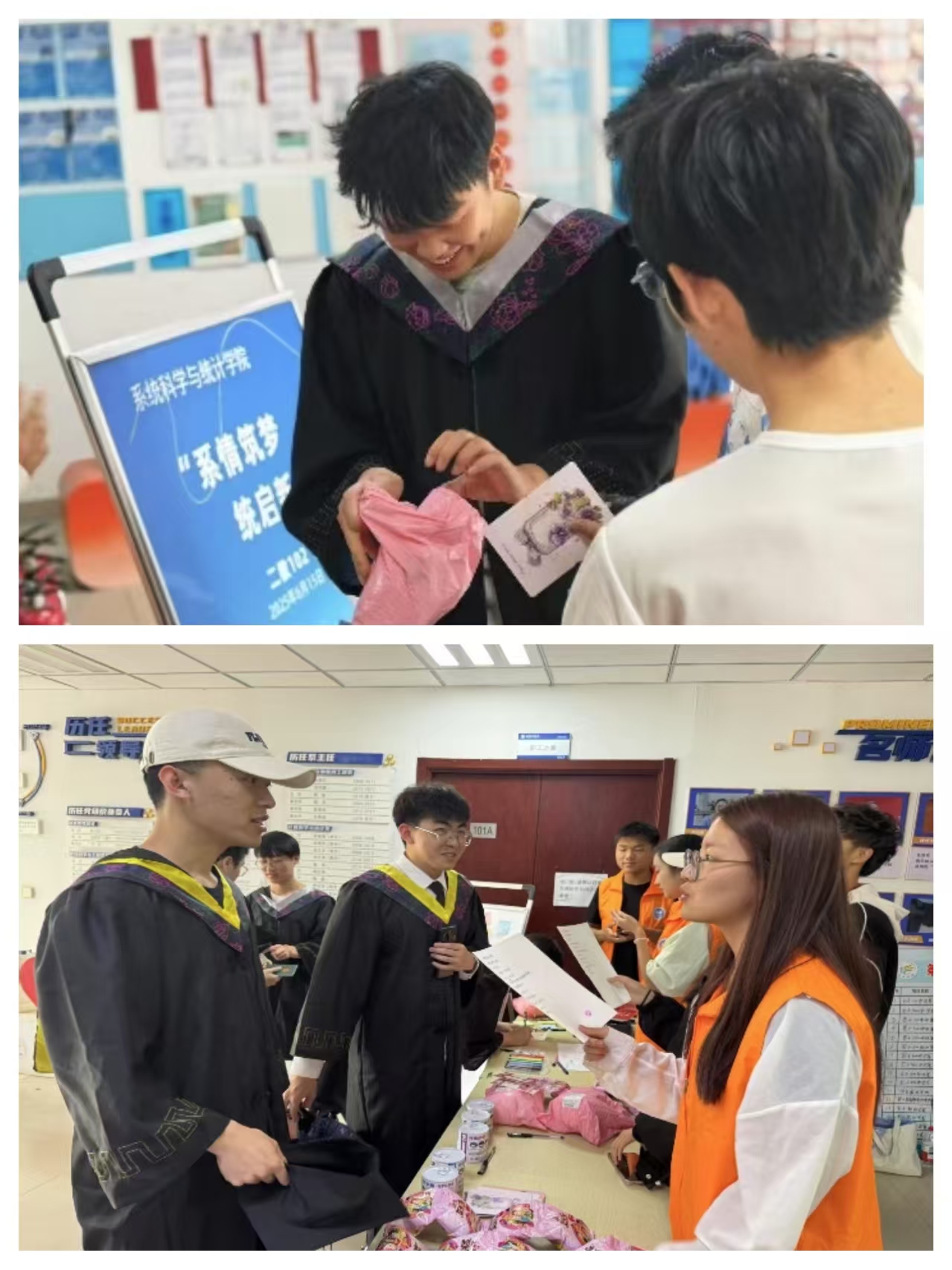 如今,毕业生们带着装满祝福的礼物与掌心的温度离开,但那些贴在板子上的真心话、卡纸上的手印、答题时的欢笑声,早已在物院的夏日里定格成永恒。愿此去星辰大海,他们都能带着“系情筑梦”的初心,在“统启新章”的征途上,书写更耀眼的未来!