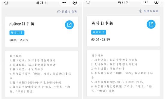 立足专业特色,学院推出的 “Python学习”以“每日精进”模式有序推进。每日发布学习任务后,在班级群及时温馨提醒完成进度,鼓励新生分享代码成果共研共进。部分班级自发组建“代码交流沙龙”,云端切磋编程心得,让严谨的代码世界涌动着互助成长的暖流,活跃的学习氛围在指尖与屏幕间悄然升温。