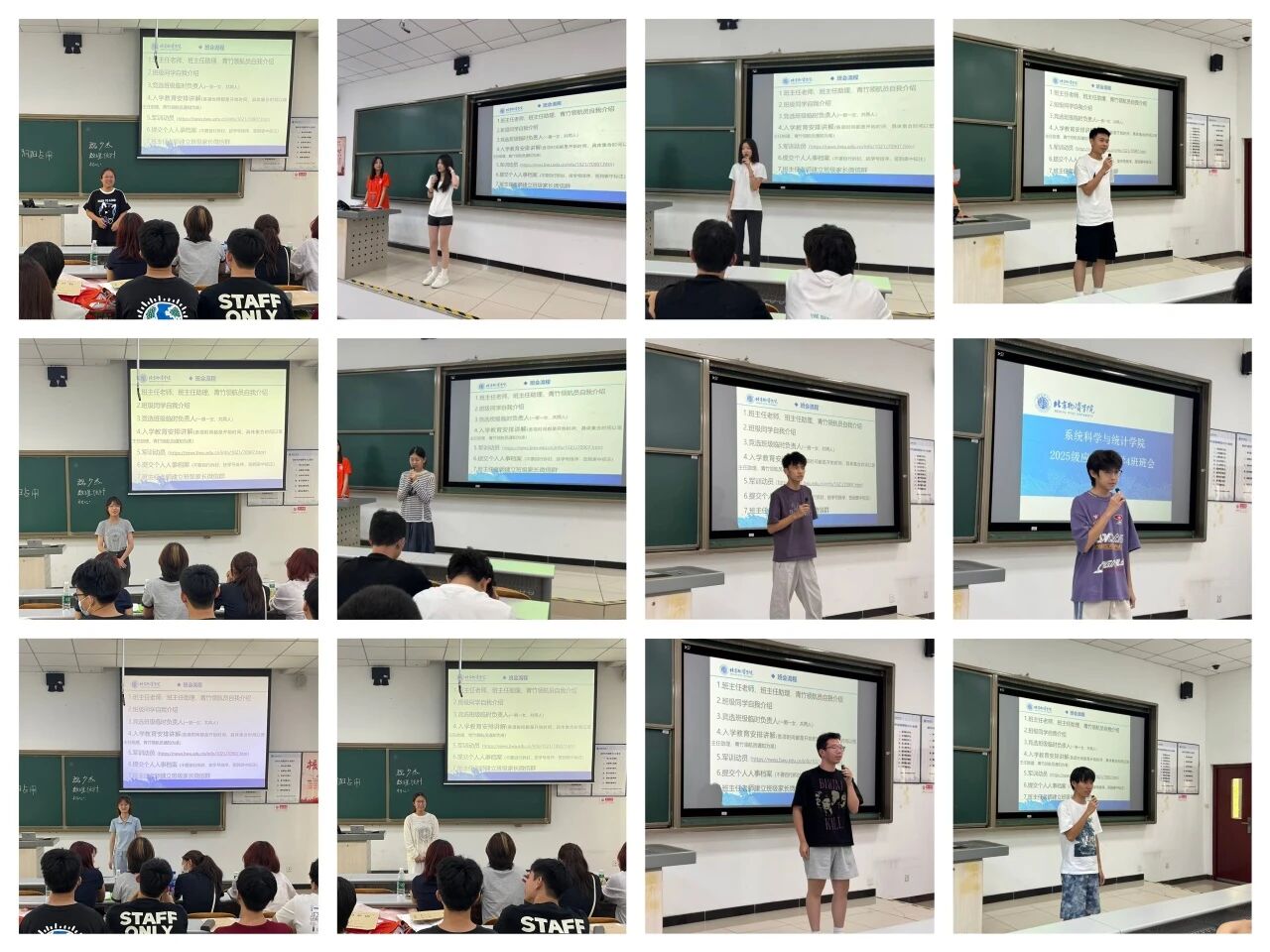 随后进入班级同学自我介绍环节。来自全国各地的新生们依次登场,分享家乡特色、兴趣爱好与大学憧憬——有人提及对数据科学领域的探索热情,有人讲述对未来专业学习的规划,还有人展示绘画、运动等特长。在轻松的交流中,新生们打破陌生感,为后续班级生活奠定友谊基础。接着,为保障军训及初期班级事务有序开展,班会组织竞选班级临时负责人,选拔1名男生、1名女生共同担任。有意向的新生主动上台,阐述自身优势与服务计划,涵盖“协助传达通知”“帮助同学适应”“配合老师完成任务”等内容。经全体新生自主投票,各班顺利确定临时负责人,为班级搭建起初期沟通纽带。