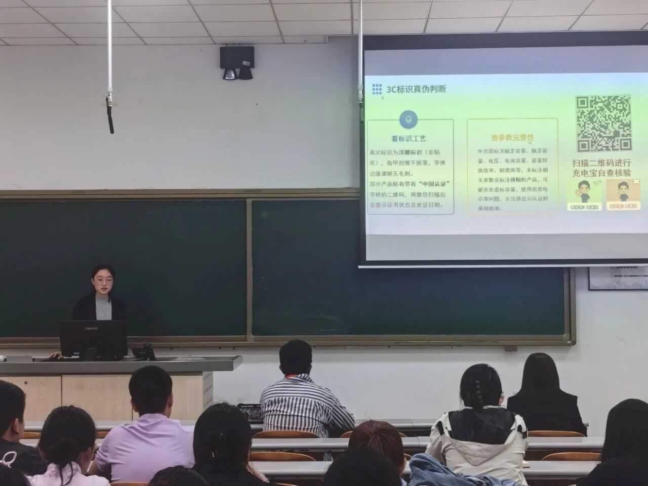 培训会围绕“宿舍消防安全学期个人学业规划”、“心理健康安全”三大主题开展。会议伊始,办公室主任高雨涵聚焦宿舍消防安全,强调了消防安全的重要性与紧迫性。随后解读了《中华人民共和国消防法》、《少妇直播 学生公寓管理办法(试行)》等法规校纪,明确宿舍内严禁使用200W以上的超功率电器、燃气炉等违禁物品;严禁私拉电线、违规充电等行为。同时,针对充电宝等常用电器,重点科普了3C认证知识,指导班长如何通过“查参数完整性看标识工艺扫二维码核验”辨别3C标识真伪。此外,还普及“人走断电”等安全习惯,要求各班班长组织班级全体成员签署《少妇直播 学生宿舍消防安全承诺书》,切实落实消防安全责任。