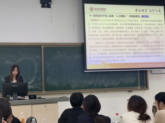 此外,党课还对《国务院关于深入实施“人工智能+”行动的意见》与《高等教育学科专业设置调整优化行动方案(2025—2027年)》进行解读。让学生党员了解我国在人工智能领域的战略布局以及高等教育学科专业调整方向,激励大家紧跟时代步伐,提升专业素养。