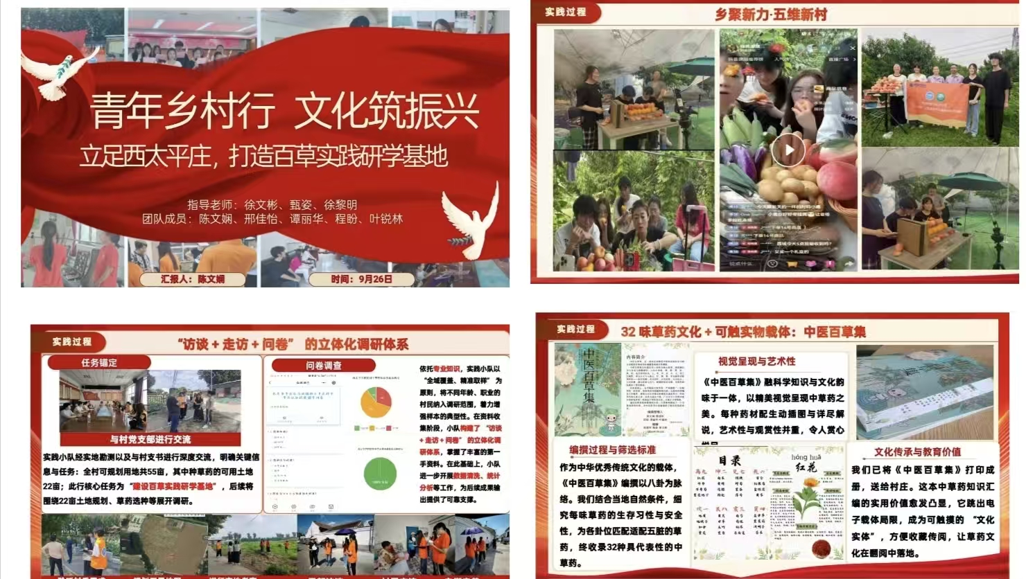 在精品项目展示评比现场,各支实践队伍依次登场,以生动的讲述、详实的报告与鲜活的影像,全方位展现实践成果的独特魅力。每一支队伍的展示都紧扣实践主题,既有对专业知识的灵活运用,也有对社会需求的精准回应;既呈现了实践过程中的艰辛与收获,也传递了新时代青年扎根基层、服务社会的责任与担当。精彩的汇报赢得了现场评委与观众的阵阵掌声,也让暑期社会实践的丰硕成果得以充分彰显。