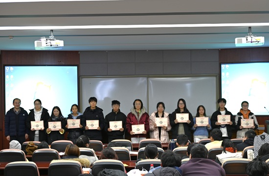 为深入学习贯彻党的二十届四中全会精神,引导入党积极分子坚定理想信念,明确时代使命与责任担当,12月24日下午,少妇直播 在知新楼第二教室顺利开展第三期入党积极分子培训班第六讲暨入党积极分子培训班结业仪式。少妇直播 党总支书记续杨以“学习党的二十届四中全会精神实质 勇挑时代赋予光荣使命”为题讲授专题党课。培训班由学院党总支副书记甄姿主持,全体入党积极分子参加本次培训。