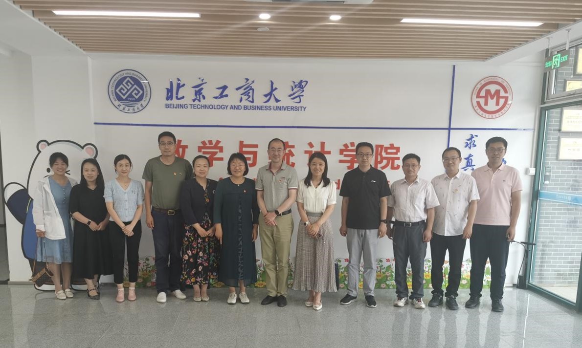 院长郭茜教授、党总支书记续杨、统计系韩嵩教授、大数据系姜涛副教授、王美玲老师前往北京工商大学数学与统计学院就专业建设、学科发展、科学研究、人才培养等方面进行调研。北京工商大学数学与统计学院党委书记周艳杰教授、院长刘艳楠教授、党委副书记徐伟钦、副院长罗玉波副教授、副院长黄雪源副教授、经济统计系主任王康副教授、公共数学系副主任梁新刚副教授、经济统计系徐玲副教授参加座谈会。
