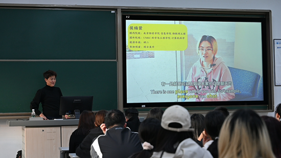 讲座现场,丁欢主任首先通过往届学姐的实景分享视频,直观呈现了校园生活场景与学术氛围。视频中,学姐详细介绍了留学期间的成长蜕变:从被动学习到主动走进图书馆,依托小组讨论区域开展协作;在流动式小组作业中,通过协调代码编写、报告撰写、文字整理等分工,显著提升了时间管理与跨领域协作能力。